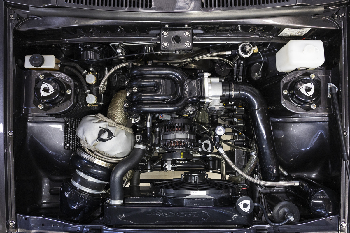 turbocharged 13B two-rotor built by PAC Performance in a Mazda RX-3 engine bay
