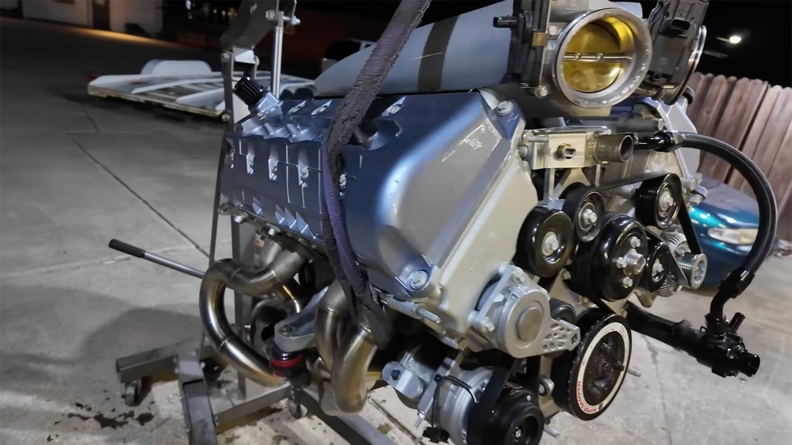 dual throttle bodies and custom intake manifold on a DOHC 40v V10